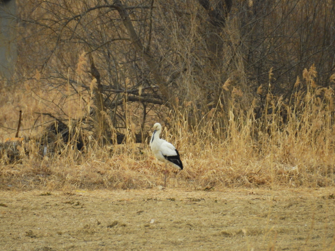 멸종위기 야생동물 1급인 황새(천연기념물 199호)가 지난 23일 김해화포천습지를 찾았다.