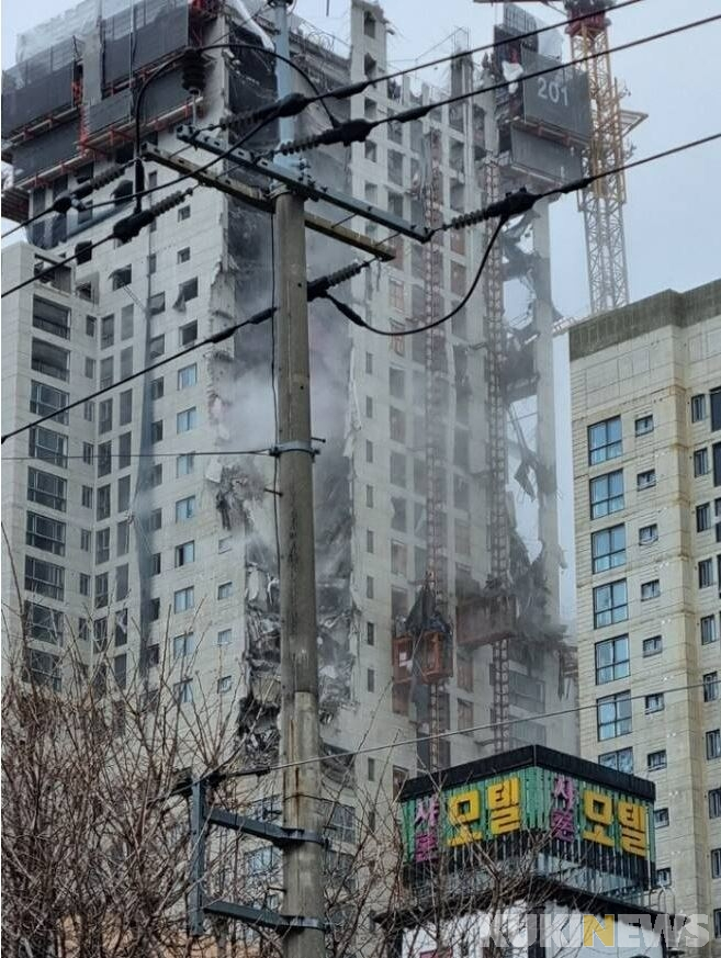 한편 당국은 전날부터 붕괴 사고의 실종자 수색을 24시간 체제로 전환했다. 그동안 현장 대원들의 안전을 위해 야간에는 수색을 중단했지만 건물 옆 타워크레인의 상층부 해체에 따라 위험 요소가 줄었다는 판단에 따른 조치다.