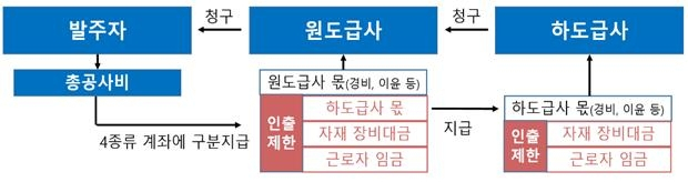 현행 건설산업기본법은 공공공사의 대금을 ‘대금지급시스템’을 통해 청구·지급하도록 규정한다. 하지만, 공사대금을 세부 항목별로 구분하지 않고 건설사 전체 몫으로 청구해 지급받을 경우 건설사가 하수급인이나 자재·장비업자에게 줘야 할 공사대금과 근로자의 임금을 체불할 가능성이 있다는 지적이 제기됐다.
