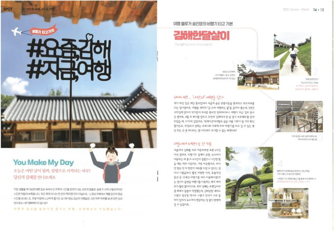 스팟면의 '비행기 타고 가는 #요즘, 김해#지금, 여행'에서는 일을 하면서 휴식을 즐기는 '김해 한 달 살이' 프로그램 참여자들의 체류형 여행기도 잔잔하게 소개하고 있다.