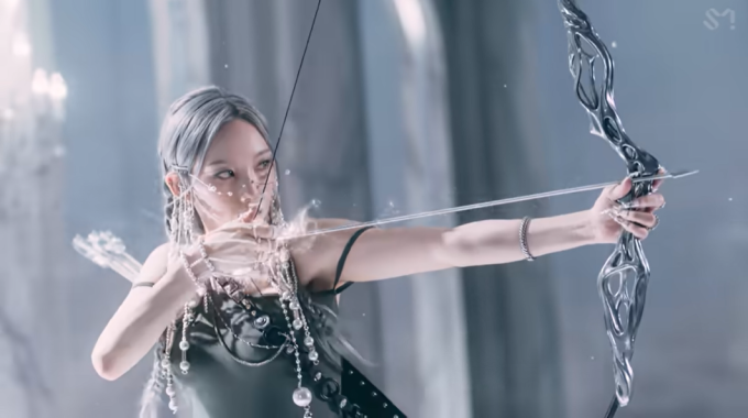 그룹 소녀시대 멤버 태연은 14일 오후 6시 공개하는 신곡 ‘아이앤비유’(INVU) 뮤직비디오에서 드레스 차림으로 활시위를 당긴다. 비장한 표정으로 화살을 쏘고 위풍당당하게 신전을 거니는 모습이 그리스 신화 속 전쟁의 여신 아테나를 닮았다. 사랑에 상처받은 마음을 표현한 노래에 전쟁의 여신이라니. 이날 온라인으로 만난 태연이 들려준 얘기는 이랬다. “상처를 받고도 사랑하는 마음을 아끼지 않는 사람의 이야기예요. 강인하고 비장한, 단단한 모습을 강조하려고 했어요.”