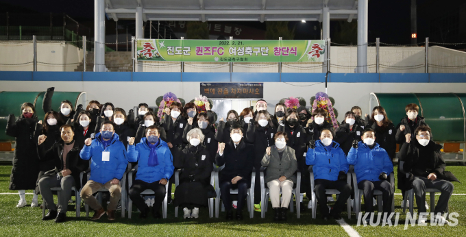 ‘진도군 퀸즈 FC’는 최근 여자 축구에 대한 높은 관심과 호응으로 가정주부, 직장인 등 20대부터 50대 후반까지 다양한 연령층의 선수 34명이 참여한 가운데 지난 21일 아리랑체육공원에서 창단식을 가졌다.