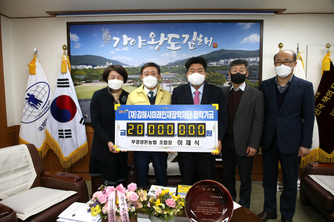 김해에 소재한 부경양돈농협이 22일 김해시미래인재장학재단에 장학금 2000만원을 전달했다.