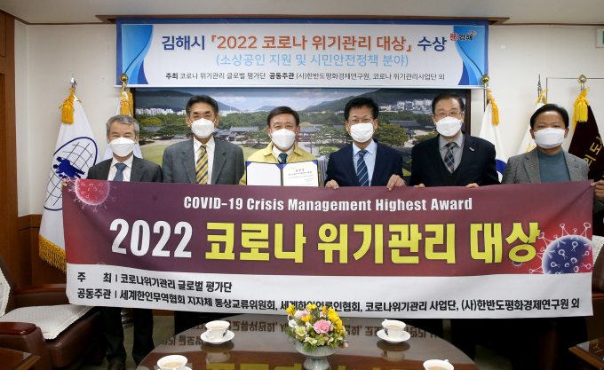 김해시가 코로나 위기에 지역경제와 시민안전을 위한 선제적 행정으로 '2022 코로나 위기관리 대상' 공모에서 대상을 받았다.