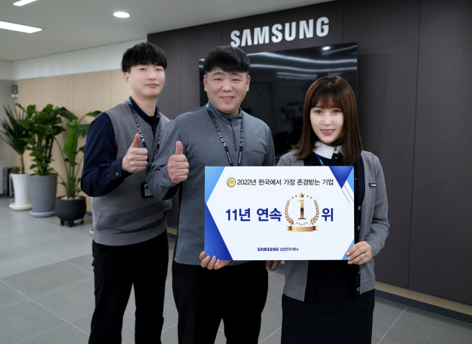 삼성전자서비스가 한국능률협회컨설팅 주관 ‘2022년 한국에서 가장 존경받는 기업’에서 서비스센터 부문 11년 연속 1위에 선정됐다. 삼성전자서비스는 2012년 조사 시행 후 줄곧 1위 자리를 지키고 있다.