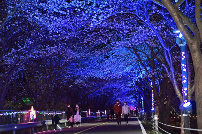 총사업비 3억원을 들여 둑길 양쪽에 설치한 형형색색의 야간 경관조명으로 낮에는 만발한 벚꽃을 감상하고, 야간에는 컬러풀한 조명을 만끽할 수 있다.