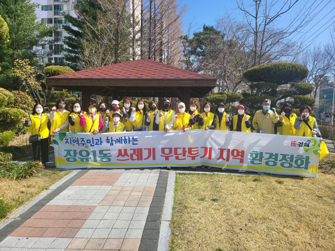 김해시 장유1동 자원봉사회 회원 20여명이 29일 장유 무계교를 중심으로 대청천 주변에 환경 정화활동을 펼쳤다.