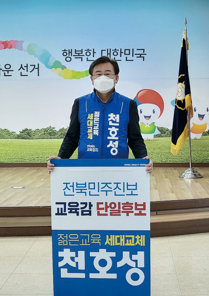 천 예비후보는 “교육감에 당선되면 초중등교육법시행령에 교사의 직무범위를 명시하도록 정부에 강력히 요청하겠다”고 덧붙였다.