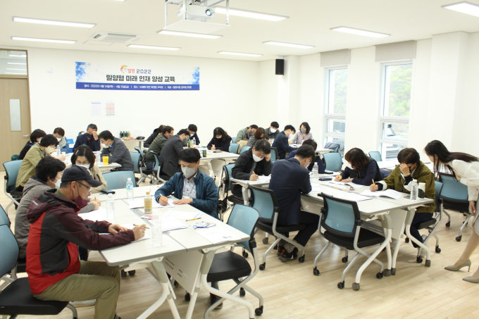 밀양시는 지난 14일부터 15일까지 이틀간 직원 50명(팀장 25명, 7-9급 25명)을 대상으로 도래재 자연휴양림(단장면 소재)에서 밀양형 미래인재 양성을 위한 역량강화 교육을 진행했다.
