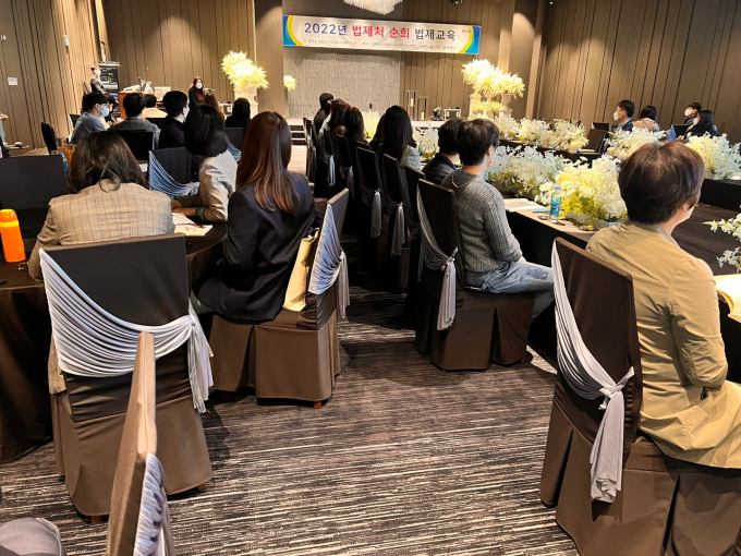김해시는 15일 김해중소기업비즈니스센터 비즈컨벤션에서 직원 100명을 대상으로 '2022년 상반기 법제교육'을 진행했다.