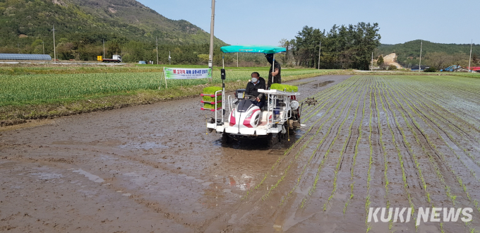 현재 모내기는 벼 2기작 재배를 위한 조기출하용 조생종으로, 추석 전 햅쌀로 수확할 예정이다.
