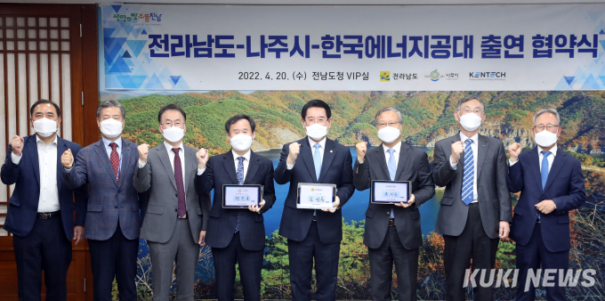 협약서는 전남도와 나주시가 올해부터 10년간 100억 원씩 총 2000억 원을 한국에너지공대에 출연하는 내용을 담고 있다.