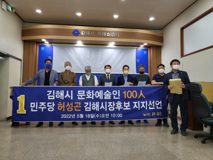 김해지역 문화예술인 100명이 18일 허성곤 더불어민주당 김해시장 후보 지지를 선언했다.