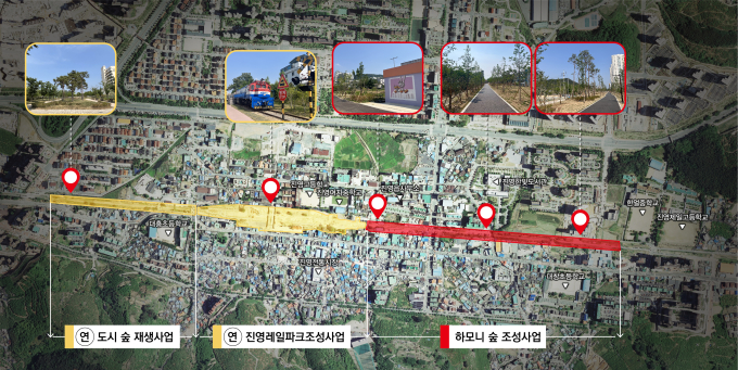 시 관계자는 "쇠락해 가던 진영 구도심이 하모니숲길 조성사업으로 남북으로 연결되고 농촌과 도심을 연계하는 주민 친화적 공간이 될 것으로 기대된다"고 말했다.