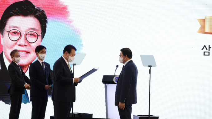 삼흥열처리 주보원회장이 26일 중소기업중앙회에서 개최한 '2022년 중소기업인대회'에서 금탑산업훈장을 받았다.