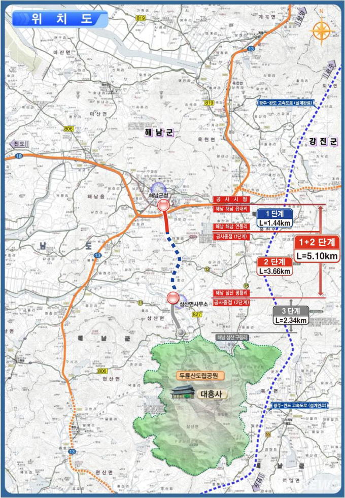 이 구간은 유네스코 세계문화유산에 등재된 천년고찰 대흥사와 빼어난 자연경관을 자랑하는 두륜산도립공원을 오가는 주요 도로다. 성수기 교통체증 해결을 위해 기존 2차로의 4차로 확장이 절실했다.