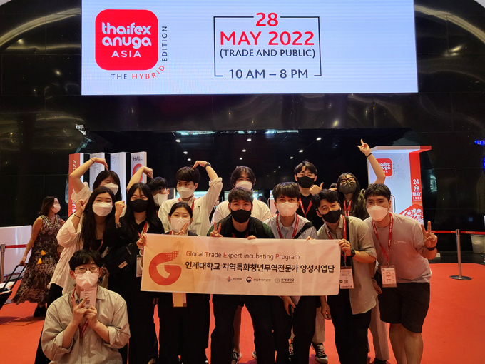 인제대 지역특화청년무역전문가양성사업단(단장 정상국, 경제통상학과 교수 · 이하 GTEP사업단)이 지난달 24일부터 28일까지 태국 방콕 IMPACT ARENA에서 개최된 태국 식품박람회(TAHIFEX)에 참가했다.