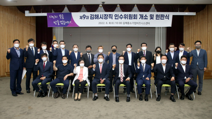 "김재원 인수위원장을 포함한 15인의 인수위원이 합심해 앞으로 20여 일간 김해시 민선8기 시정운영 방향을 설정하고 김해 미래 청사진을 그려 나가겠다"고 다짐했다.