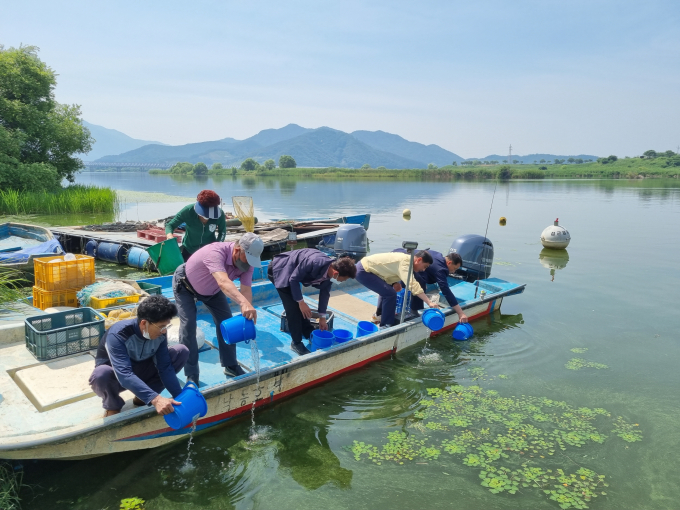 방류 현장에는 지역 내 내수면어업 허가자 어업관계자 등 20여명이 참가했다.