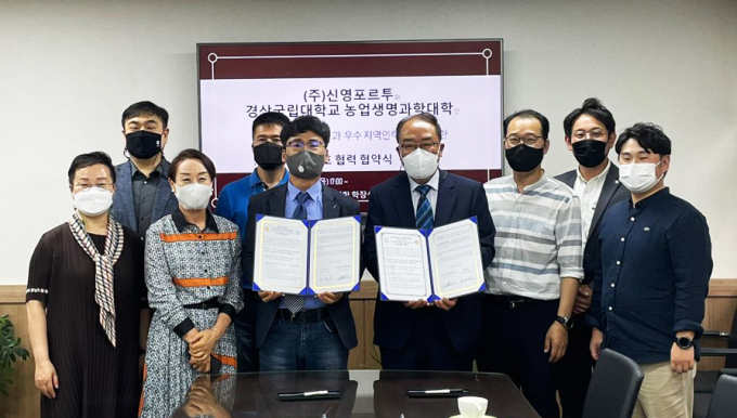 경상국립대 농업생명과학대학과 ㈜신영포르투는 이번 협정으로 지역 농림산업 전문가 역량 강화 교육과 네트워크 활성화 등 현장 문제점 해결을 위한 정보 교류, 공동연구 및 프로그램 운영과 더불어 농산업 벤처 현장실습 교육 활성화를 위한 프로그램 개발의 기초를 다지기로 했고 다양한 현장 실용 기술개발 협력 및 맞춤형 전문 인력을 육성하기로 했다.