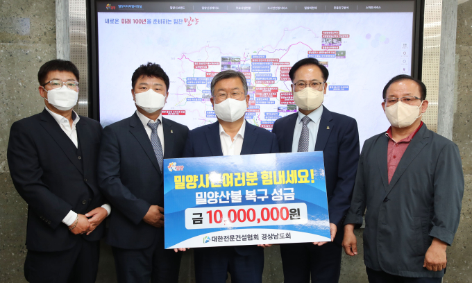 대한전문건설협회 경남도회 김종주 회장은 "갑작스러운 대형 산불로 정신적, 경제적 피해를 본 밀양시민들을 위해 도내 회원들의 정성을 담은 성금을 전달했다"고 말했다.