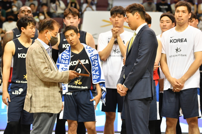 대한민국농구협회(KBA)는 18일 안양실내체육관에서 열리는 필리핀과의 ‘KB국민은행 초청 남자농구 국가대표 평가전’ 하프타임에 조성민 LG 코치와 양동근 현대모비스 코치의 은퇴 기념식을 치렀다. 양 코치는 현재 미국에서 체류중이라 이날 행사에 참석하지 못했다