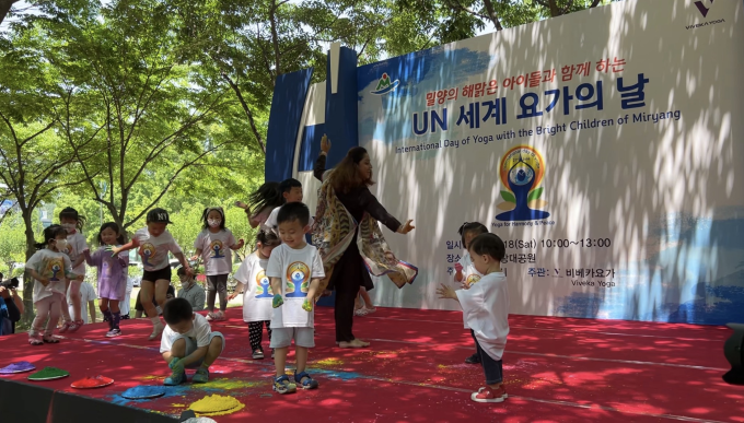 밀양시도 이날 'UN세계요가의 날'을 기념하는 자리를 마련해 미래의 희망 아이들과 시민들에게 요가를 통한 자기수련 방법과 마음의 평화를 알려주는 기회를 삼았다.