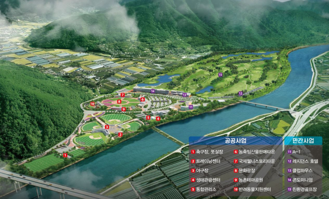 시가 휴양단지 내 조성 중인 공공사업은 농촌체험(농촌테마공원)·6차 산업(농축임산물종합판매타운)·휴양(국제웰니스토리타운, 반려동물지원센터)·스포츠(스포츠파크)·생태관광(영남알프스 생태관광센터, 고산습지센터) 등을 테마로 구성한 전국 최초의 복합테마단지다.