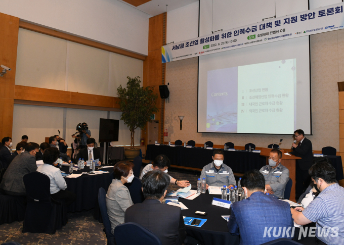 이날 토론회에서는 최근 국내 주요 조선사의 수주가 늘어나면서 인력 부족으로 일감을 소화하지 못하고 반납하는 등 어려운 상황과 인근 업체의 인력 빼가기 실태, 내국인 취업 활성화를 위한 각종 취업 지원 제도 강화 방안 등이 논의됐으며, 궁극적으로 사태 해결을 위해 외국인 인력 확보 방안에 대한 토론이 집중적으로 이루어졌다.
