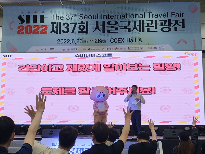 이어 '굿바비'는 전문MC와 함께 '밀양 관광 퀴즈 게임'도 진행했다. 이 자리에서 '굿바비'는 밀양의 대표 관광지인 영남루와 얼음골, 오는 9월22일 개최할 밀양아리랑대축제 등 밀양과 관련한 다양한 퀴즈문제에서 정답을 맞혔다.아울러 관람객들에게 '굿바비 굿즈'를 상품으로 건네 인기를 끌었다.