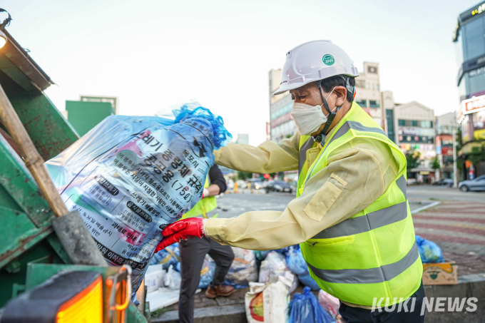 박 시장은 이날 오전 5시 30분 환경실무원과 함께 평화광장 일대의 생활쓰레기를 청소차량에 함께 실으며 취임 첫날 일정의 문을 열었다. 이어 부흥산 현충탑을 참배한 뒤 취임식을 가졌다.