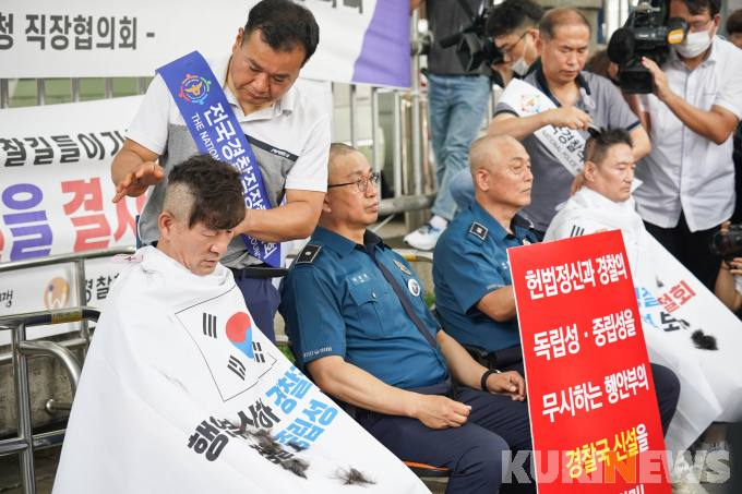 일선 현직 경찰들이 행정안전부의 경찰국 신설에 반대하며 릴레이 삭발 시위에 나섰다.