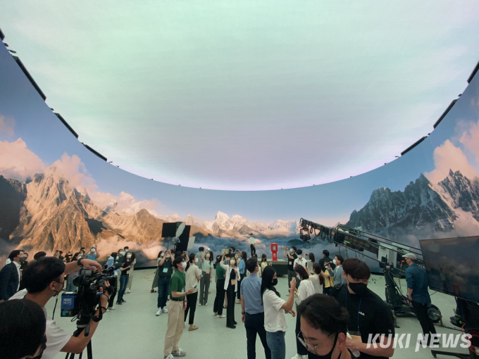 투어 백미는 VP스테이지(Virtual Production stage)였다. 이곳은 벽면 360도와 천장을 대형 스크린으로 꾸민 스튜디오다. 영상 촬영에 쓰이는 배경을 스크린에 구현할 수 있다. 눈으로 뒤덮인 광활한 산맥과 동 틀 무렵의 숲, 노을이 지는 바다까지 다양한 신을 연출할 수 있다.