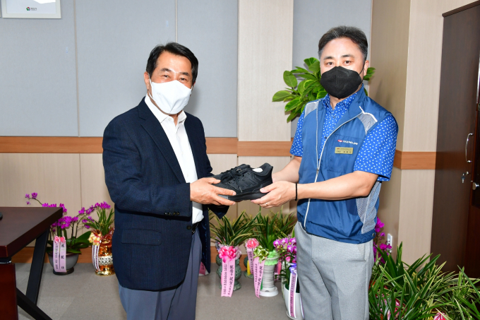 나동연 시장은 "의미있는 노조의 신발 선물에 감사하다. 3년째를 맞는 코로나 위기 속에서도 1500여 직원들이 코로나 극복을 위해 비상근무하느라 고생이 많다"며 "직원들의 복지향상과 다시 뛰는 양산을 만들기 위해 신발이 닳도록 뛰겠다"고 말했다.