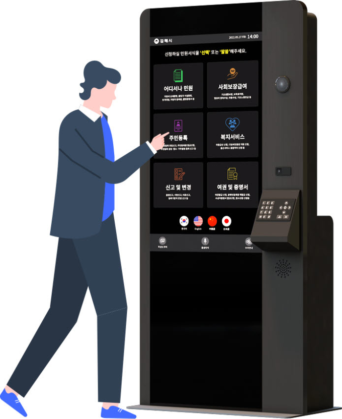 복잡한 민원서식을 간편하게 작성할 수 있도록 돕는 '지능형 키오스크'는 민원 수요가 많은 시청 민원실과 장유출장소, 8개 읍면동에 각 1대씩 설치한다.