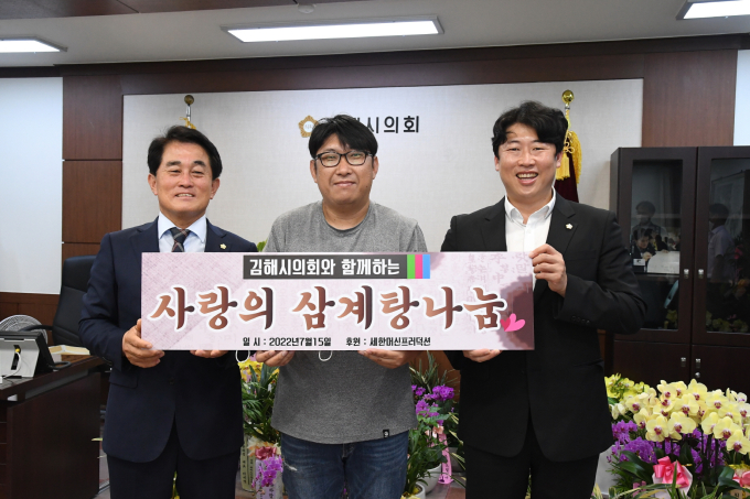 김해지역 기업체인 ㈜세한머신프러덕션이 지난 15일 삼계탕 100인분(150만원 상당)을 김해시의회에 전달했다.