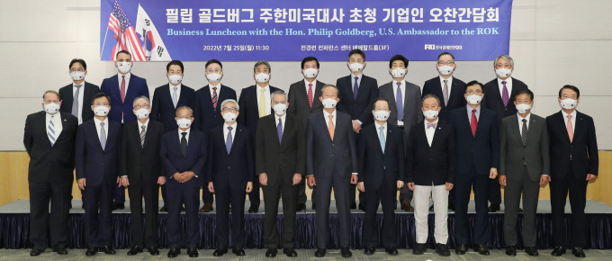 전경련는 25일 전경련 컨퍼런스센터에서 ‘필립 골드버그 주한미국대사 초청 기업인 오찬간담회’를 개최했다고 밝혔다. 이날 간담회는 필립 골드버그 신임 주한미국대사의 부임을 환영하고 한국 경제계와의 인사를 위한 자리로 마련됐다.