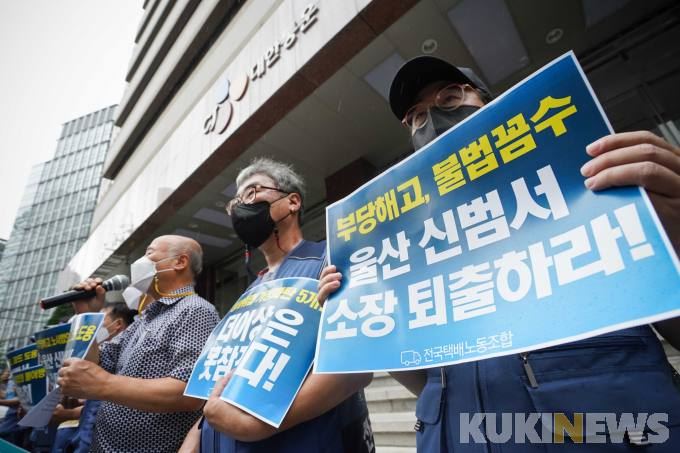 노조는 “울산 신범서대리점 김창범 소장은 기존의 계약관계를 유지하기로 한 공동합의 이행을 거부한 채 계약해지를 철회하지 않고 있다”며 “해고를 다투는 과정에서의 업무 수행까지 경찰을 동원해 막아나서는 횡포를 부리고 있다”고 지적했다.