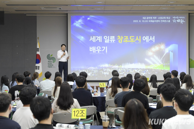 전남 순천시는 노관규 시장이 지난 10일부터 17일까지 일명 주니어(Junior)급으로 분류되는 9급 공무원에 대한 교육을 3차례에 나누어 실시했다고 19일 밝혔다.