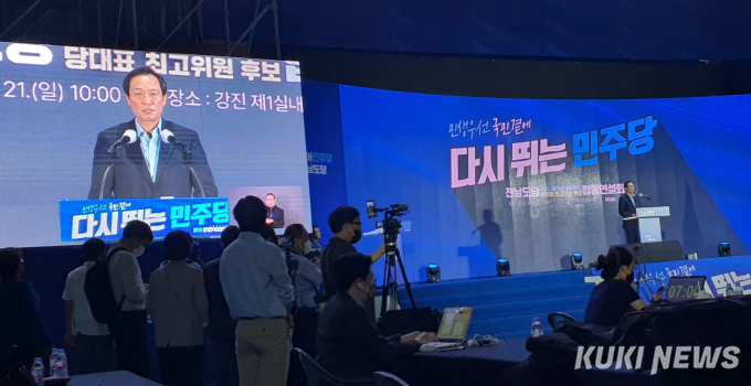 우 위원장은 21일 오전 전남 강진 제1실내체육관에서 열린 당대표‧최고위원 후보 합동연설회에서 “집권당이 권력다툼에 민생을 내팽개치고 있기 때문에 ‘경제, 민생을 챙길 수 있는 정당은 민주당밖에 없다’는 인식이 국민들 사이에서 확산되고 있다”고 말했다.