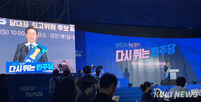 이 후보는 이날 오전 전남 강진 제1실내체육관과 오후 광주 서구 김대중컨벤션센터에서 합동연설회 후 발표된 전남‧광주 권리당원 투표 결과, 전남 5만 786표 79.02%, 광주 2만 4749표 78.58%의 득표율로 1위를 지켰다.