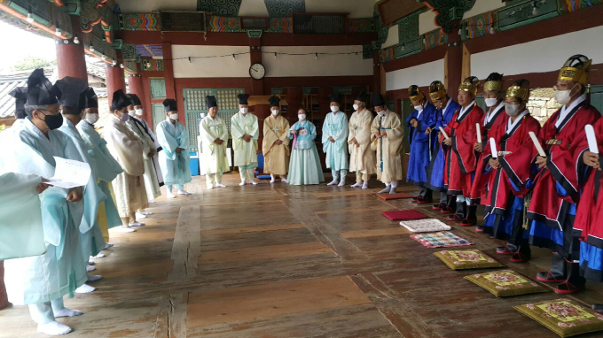 밀양 향교 '추계 석전대제'가 1일 봉행했다. 이 행사는 성현의 얼을 되새기고 유도 정신을 고취하기 위해서다. 행사에는 밀양향교 전교와 임원, 향교 문중 등 유림이 참석해 성현들에 대한 제향을 거행했다.