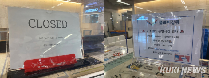 플라이강원과 하이에어 발권창구는 닫혀있었다. 플라이강원은 태풍 피해를 입은 강원(양양)에 허브공항을 두고 있다. 하이에어도 피해 지역인 울산에 허브공항을 둔 소형항공운송사업자다.