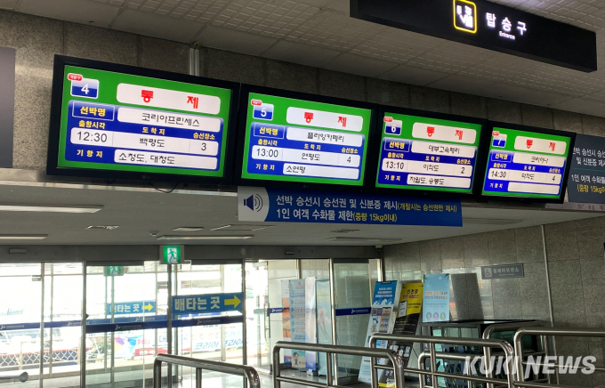 터미널 관계자는 “출항 여부는 항상 당일 새벽에 정해지는데 어제 사전 통제됐다”며 “오늘은 배가 한 척도 뜨지 않았다”고 밝혔다. 그러면서 “통제가 풀릴지는 내일 오전 6시 반에 알 수 있다”고 덧붙였다.