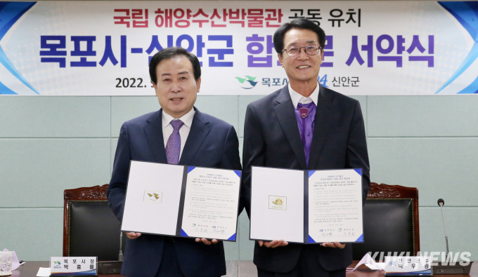목포시와 신안군도 박물관의 신안군 유치를 위해 힘을 보태기로 하고, 지난달 29일 목포시청에서 박홍률 시장과 박우량 군수가 ‘국립 해양수산박물관 공동유치를 위한 합의문 서약식’을 가졌다.