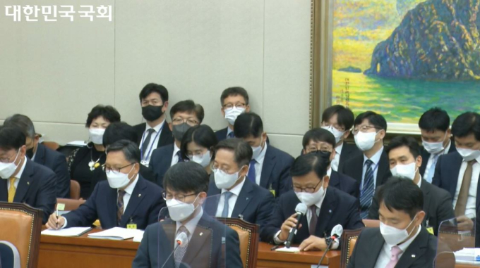 11일 국회 정무위원회 국정감사에는 이재근 KB국민은행장, 진옥동 신한은행장, 박성호 하나은행장, 이원덕 우리은행장, 임동순 NH농협은행 수석부행장이 증인으로 출석했다.