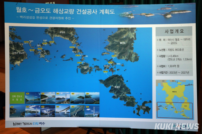금오도 해상교량은 지방도 863호선 단절구간인 금오도~대두라도~월호도(10.4㎞)를 잇는 사업이다. 총 2000여억 원이 투입되는 대형 프로젝트다.