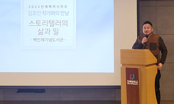 인제대가 인문학 소양을 갖춘 창의적 인재 양성을 위해 명사 초청 특강을 이어오고 있다. 이의 하나로 인제대는 지난3일 본관 대강당에서 '불편한 편의점'의 저자 김호연 작가를 초청해 특별강연을 개최했다.
