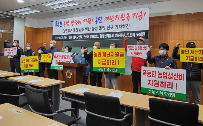 전북 농민단체가 고물가로 위기에 봉착한 농민 생존권 보장을 위해 전북도의 실질적인 대책 마련을 촉구하고 나섰다.