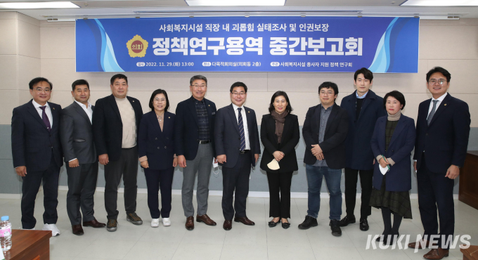 연구회 박종원(담양1, 민주) 대표는 “사회복지시설의 근무여건이 열악한데 직장 내 괴롭힘은 종사자들의 삶 자체를 무너뜨리는 것”이라면서 “연구회는 이번달 용역 최종보고서가 나오는 대로 사회복지시설 내 괴롭힘 및 인권 침해 문제를 해결을 위한 예방책과 구제 방안을 마련하고 대응 매뉴얼 개발 등 제도개선에도 나서겠다”고 말했다.